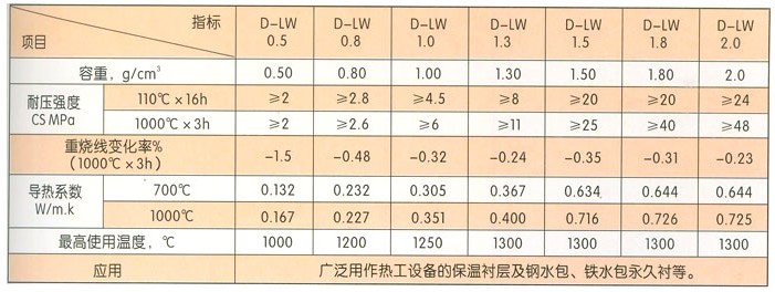 高強度輕質澆注料主要理化指標: