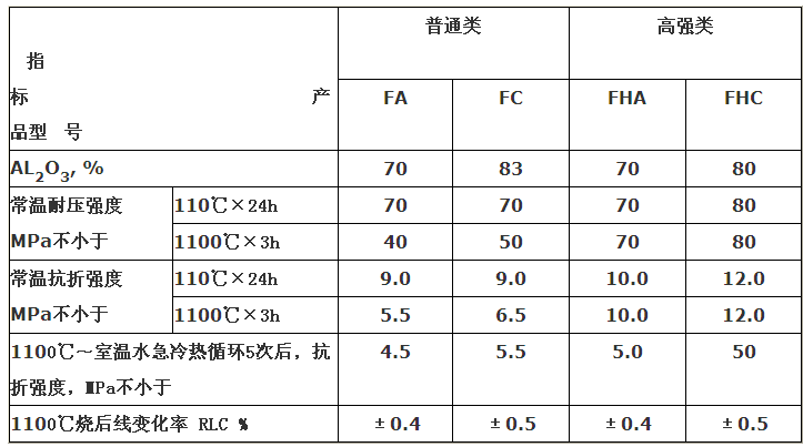 澆注料理化指標